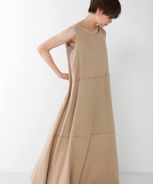 これからの季節に着まわしたいテントワンピース ■POINT さらりとした涼感が心地良いノースリーブワンピース。 緩やかに広がるシルエットが、リラックス感をプラスします。 シンプルながらも華やかで涼し気な大人のサマーワンピースです。 切替が入っているので表面感もありバックシルエットも美しく ■FABRIC 綿麻のさらりとした素材感 ドライなタッチながらも落ち感があるのでラインを拾いません ■COORDINATE 1枚で着ても切替とバックリボンのデザインでサマになるシルエット 38とトールサイズのご用意があるのでデニムやパンツでレイヤードを楽しみたい方は 38サイズでのコーディネートがおすすめ ………………… 透け感:なし 裏地:なし …………………