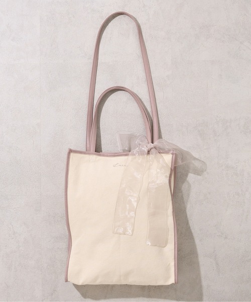 パイピングとリボンがポイントになっている新作ロゴトートBAG♫ WEB限定アイテムになります。 ■デザイン ・高さもあってA4サイズがしっかり入ります。 ・配色パイピングと同色のロゴがはいっているシンプルで合わせやすいトート。 ・同色のオーガンジーのリボンが可愛さをプラスしてくれています。 ・リボンは取り外しができるのでシーンに合わせて使いやすくなっています。 ・ショルダーがついているので斜めがけもできる使用です。 ・シーズンレスの素材でマルチに活用できるのが◎ ■スタイリング ・マルチにお使いいただける縦長トートバッグ。 ・パーカーやTシャツなどカジュアルスタイルもガーリーさがプラスされます〇 ・晩夏に向けても万能です。テーラードのセットアップやトレンチコートにもきれいめガーリースタイルで♪ ※使用時にベルト、お洋服などや周辺の壁など表面の粗いものとの摩擦やひっかかりに注意してください。 ※湿気の多い場所での保管や、水に濡れたまま放置しますと、変色、色移り、サビ、カビ、破損の原因となります。 ※ご覧のモニター環境や撮影環境により実際の商品と多少色味が異なって見える場合がございます。 ご理解の程よろしくお願いいたします。