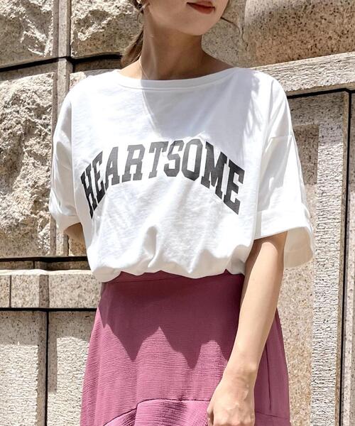 2021 春夏アイテム ボーイッシュなイメージのカレッジロゴTシャツをショート丈でトレンドライクに。落ち着いたカラー使いで大人っぽく着られます。ゆったりとした身頃との組み合わせで好バランスのコーディネイトが完成。袖口の折り返しデザインがアクセントになっています。パンツに合わせた着こなしはもちろん、ふんわりスカートを合わせたガーリーコーデもおすすめ。【以下オフホワイト参考。カラーにより多少の誤差あり】・透け感:やや透ける・伸縮性:あり・生地の厚さ:薄い・裏地:なし