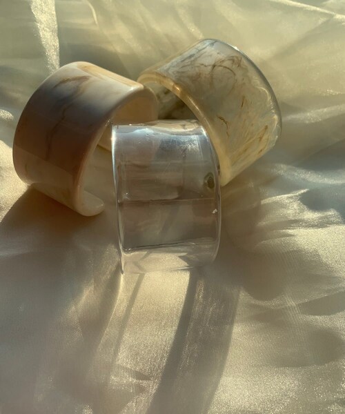 この夏大活躍間違いないしの大ぶりアクリルバングル◎ビッグデザインとアクリルのクリア感が存在感のあるおしゃれバングル!◎単品使いはもちろん、今季は他のブレスレットとの重ね着けもおすすめ〇◎手元のオシャレが広がる半袖シーズンに向けて、手元を華やかに♪※掲載画像の商品の色味は屋外や屋内の光の照射・角度により実物の色味が異なる場合がございます。予めご了承ください。※着用・お取り扱いの際、商品についている品質表示とアテンションタグを必ずご確認ください。商品のお取り扱い・ご注意等に関してはこちら