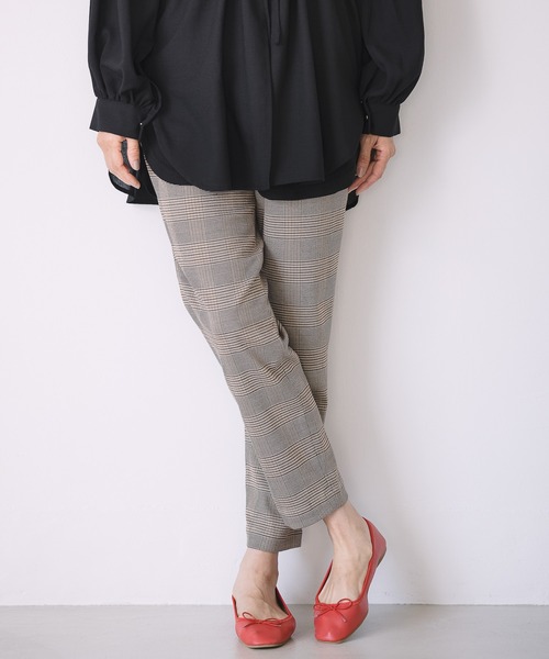 <6つの嬉しい機能付き!!> 様々なシーンで活躍するLEPSIMの 【ハタラク7DAYSパンツ】 【多機能素材】 【1】4WAYストレッチ ・縦、横、ななめに伸びるストレッチで動きやすい! 【2】マシーンウォッシャブル ・洗濯機で洗えてお手入れ簡単! 【3】防シワ ・着用中もシワになりにくい! ※全くシワにならない訳ではありません。 【4】イージーケア ・洗濯後のシワのお手入れが簡単! 【5】撥水 ・ちょっとした雨でも安心! 【6】防汚 ・汚れが付きにくい! お仕事からプライベートまで使えるハタラク7DAYSシリーズにチェック柄が登場!嬉しい機能、毎日でも穿きたくなる着心地やシルエット、デザインはそのまま様々なシーンで使いやすい華奢なチェック柄をご用意しました。定番のシャツスタイルやお仕事用のブラウスなどにチェックを合わせることでスタイリングにグッと季節感をプラスできるのでおすすめです。 ≪テーパードパンツ≫ 程よいゆとりのテーパードシルエットが脚をまっすぐきれいに見せてくれ、フロントのタックデザインは、気になるお腹まわりもすっきり見せてくれる効果も◎ウエストに内紐が通っているのでサイズ調整が可能&ゴム仕様で動きやすく、お仕事からプライベートまで幅広く使いやすいパンツです。