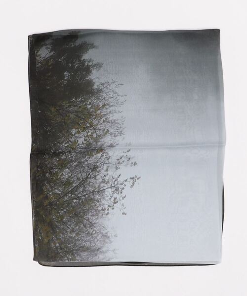 アニエスベーが撮影した写真をプリントした大判のスカーフ。 シルクシフォン素材で透け感のあるしなやかな肌触りが魅力。 写真はアニエスベーの自宅の庭の風景。霧がかかっていて幻想的な雰囲気です。 <アニエスベーのフォトプリント> 写真が大好きなアニエスベーは、自分で撮影した写真を表現するキャンバスとして服を使うことにしました。 Tシャツやスカート、ワンピースにプリントされたフォトプリントシリーズは、毎シーズンコレクションに登場する象徴的なアイテムです。 アニエスベーは実際に服の全面に写真が施された様子を思い浮かべながら撮影をしています。