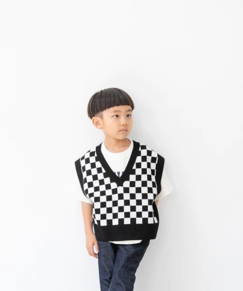 目を引く総柄のニットベスト。 Tシャツと合わせたり、シャツやブラウスと合わせたり・・色々なコーディネートが楽しめます♪ ガラニットフレアパンツと同デザインなので、セットアップでも着れちゃいます♪
