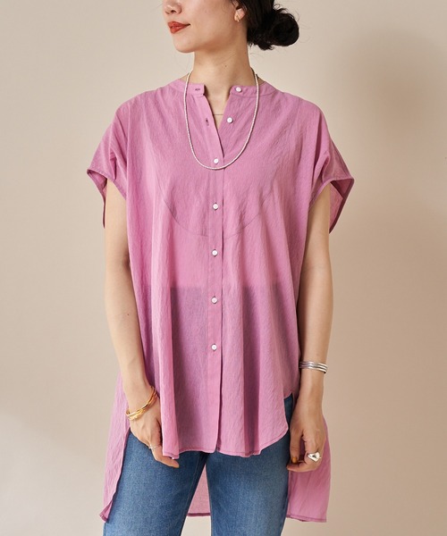 ♦シアー素材が今年らしいヨーク切替シャツ カジュアルになりすぎない、フレンチスリーブで 落ち感のある素材が女性らしい1枚です。 シアー素材でこれからの時期も涼しげに着られます。 ゆったりとしたシルエットで肩周りをさり気なくカバーしてくれるのもポイント。 後ろ開きのバックシャンデザインで後ろ姿まで抜かりないデザインです。 丈感が長めなので、デニムやタイトスカートと合わせるのがおすすめです。 着まわし力抜群の1着です。 ・シアー素材で真夏にもぴったり ・バックシャンデザインで後ろ姿まで抜かりないデザイン ・パンツにもスカートにも合わせやすい万能シャツ <おすすめスタイリング> 【WEB限定】サイドスリットフレアデニムパンツ(SNZ1012103A0001)や リネンドロストパンツ(SNZ1011502A0004)との合わせがおすすめです。 ※こちらはセレクト商品のCHIGNONとなります。 - - - - - - - - - - - - - - - 透け感:あり 裏地:なし 伸縮性:なし 光沢感:なし 生地の厚さ:薄い 取り扱い:ドライクリーニング - - - - - - - - - - - - - - - ※撮影環境により、光の当たり具合で色味が違って見える場合があります。 あらかじめご了承下さい。 ●お気に入り登録のおすすめ● ≪気になるアイテムを登録≫ ハートをクリックしてお気に入りに登録すると 完売カラーの再入荷やラスト1点の通知、セールの通知を受けとることができます。 ≪ブランドを登録≫ 新商品や再入荷など、いち早くブランドの情報を受けとることができます。