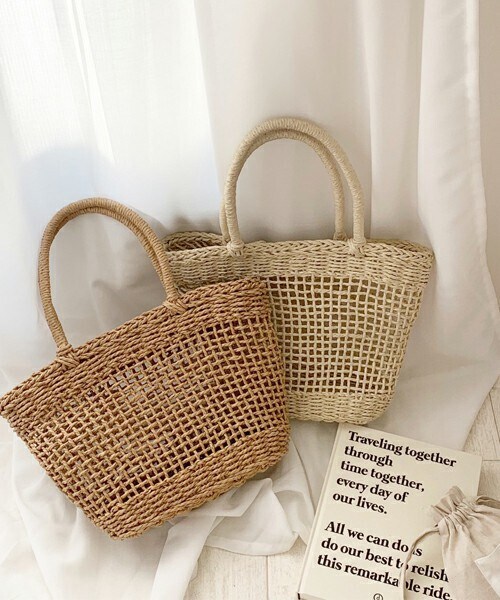 夏にぴったりの涼しげなカゴバッグが登場! トートバッグタイプで少し大きめのサイズ感なので容量もしっかり◎ どんなコーデにも合わせやすい2色展開です。