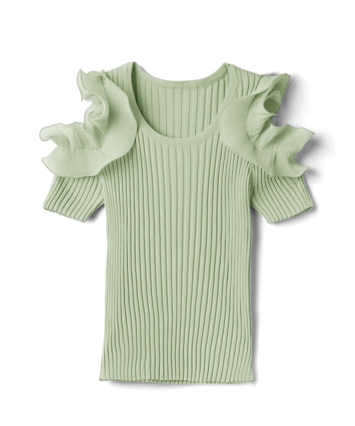 袖のチュールがゴージャスなトップス。 太めの縦リブは縦ラインを強調し、スタイルアップを叶える。 チラッと見える肩がドキッとさせるきっかけに。 体にフィットしたシルエットで、女性らしいボディラインが際立つ。 ★伸縮性があります。 ★素材の特性上、カラー・形・サイズが、写真・サイズ表示と多少異なる場合があります。 ★ショルダー部分が開いているデザインです。