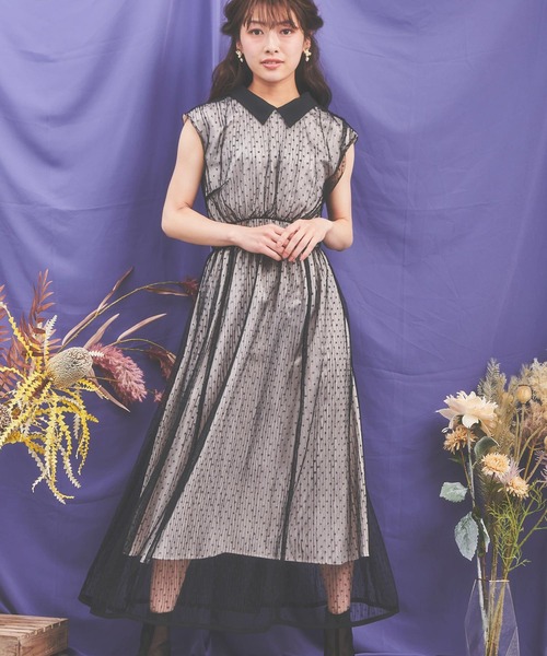 配色ラインがポイントの襟付きパターンワンピース。メリハリのあるシルエットで大人っぽく仕上げました。熱い時期から秋まで長く使えるワンピースです。※襟は取り外し可能な2WAY仕様となっております。