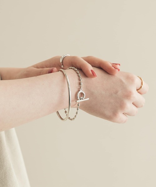 【程よい存在感】 ボールチェーンのブレスレットとシンプルデザインのバングルセット。 どちらも幅感を抑えたラインで、重すぎない仕上がりに。 単品使いでも重ね付けでも使えるデザインが嬉しいです◎ ※メッキ製品は変色してしまいがちです。こまめなお手入れで防止してください。アレルギー体質の方や体調が低下している方など、かぶれることがありますので十分にご注意ください。 ※アクセサリーは壊れやすいものです。取扱いにご注意ください。 ※その他お取り扱いに関しましては、商品に付属のアテンションタグをご覧ください。 ※商品画像は、光の当たり具合やパソコンなどの閲覧環境により、実際の色味と異なって見える場合がございます。予めご了承ください。 ※商品の色味の目安は、商品単体の画像をご参照ください。