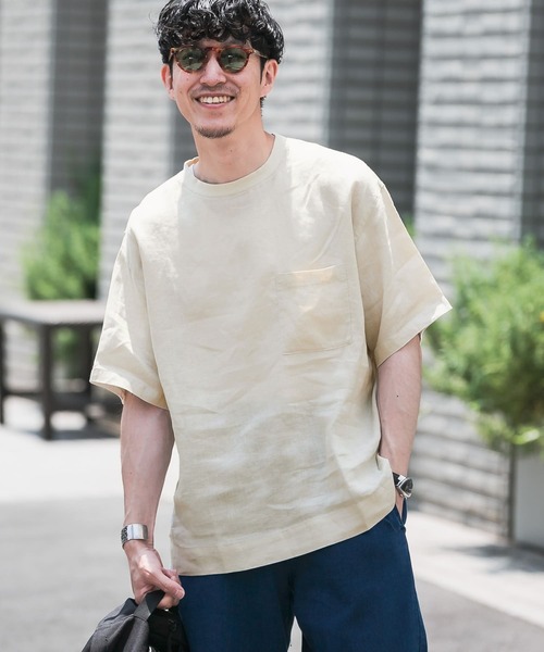 夏の定番素材リネン100%を使用した半袖Tシャツ。 麻特有のシャリ感が他にはない表情のある生地で、清涼感を高めてくれる軽さと通気性の良さが季節感をグッと引き上げてくれます。 程よくゆとりがあるシルエットなのでタイトパンツやワイドパンツなど様々なコーディネートと相性が良い一枚です。 ※商品画像は、光の当たり具合やパソコンなどの閲覧環境により、実際の色味と異なって見える場合がございます。予めご了承ください。 ※商品の色味の目安は、商品単体の画像をご参照ください。 ▼お気に入り登録のおすすめ▼ お気に入り登録商品は、マイページにて現在の価格情報や在庫状況の確認が可能です。 お買い物リストの管理に是非ご利用下さい。 ----------------------------- 透け感:ややあり 伸縮性:なし 裏地:なし 光沢:なし ポケット:あり -----------------------------