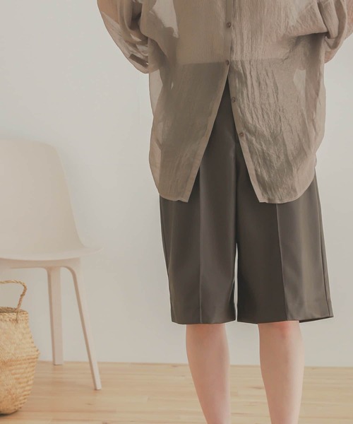 トレンドのロングブーツ合わせがしやすいバミューダパンツ フェイクレザーで高見えする履きやすいボトムス 〇高見えするしなやかなフェイクレザー素材 〇スタイルアップ可能なピンタック入り 〇程よく裾に向かって広がるシルエット styling バミューダパンツはピンタック入りですっきりとさせつつも、裾に向かって緩やかに広がるシルエットで抜け感のあるデザインになっています。 チュニック丈ブラウスとトレンドのロングブーツなどを合わせるだけでワンランク上のスタイリングが決まるアイテムです。 ※この商品の(バック)ポケットはフェイクです。予めご了承ください。 ※この商品は、合成皮革を使用しています。素材の特性上、空気中の湿気や紫外線、熱や汚れなどにより、時間の経過と共に劣化(剥離・べたつき)します。 ※その他お取り扱いに関しましては、商品に付属のアテンションタグをご覧ください。 ※商品画像は、光の当たり具合やパソコンなどの閲覧環境により、実際の色味と異なって見える場合がございます。予めご了承ください。 ※商品の色味の目安は、商品単体の画像をご参照ください。 ▼お気に入り登録のおすすめ▼ お気に入り登録商品は、マイページにて現在の価格情報や在庫状況の確認が可能です。 お買い物リストの管理に是非ご利用下さい。 ----------------------------- 透け感:なし 伸縮性:なし 裏地:なし 光沢:ややあり ポケット:あり -----------------------------