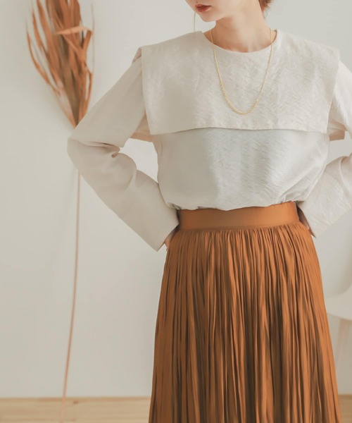 トレンド感のあるセーラーカラーを大人っぽくアップデートしました さらりとした軽い着心地で秋口におすすめの一着 〇首元がすっきり見えるスクエアカラー 〇高見えする表面感のある素材 〇落ち着いたベーシックカラーのニ色展開 styling ロングスカートとの合わせがおすすめです、ティアードスカートやイージー素材などと合わせるとぐっと今年らしい印象になります。 ※商品画像は、光の当たり具合やパソコンなどの閲覧環境により、実際の色味と異なって見える場合がございます。予めご了承ください。 ※商品の色味の目安は、商品単体の画像をご参照ください。 ▼お気に入り登録のおすすめ▼ お気に入り登録商品は、マイページにて現在の価格情報や在庫状況の確認が可能です。 お買い物リストの管理に是非ご利用下さい。 ----------------------------- 透け感:ややあり 伸縮性:なし 裏地:なし 光沢:なし ポケット:なし -----------------------------