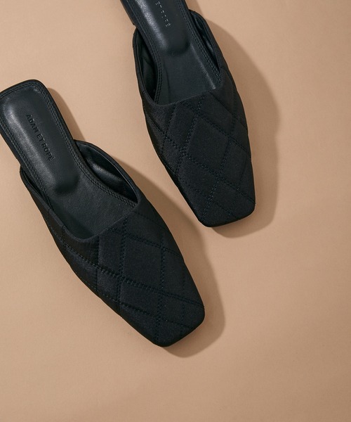 足元から高まる秋ムード。キルティング加工を施したウォーム感が魅力の大人ミュール ◆2021-22秋冬◆ADAM ET ROPE' FEMME【Material】アッパーに、上品なツヤ感のキルティング加工を施したナイロン生地を使用。【Design】温かみを感じるふくらみのあるキルティング生地が、秋冬ムードを高めてくれるミュールサンダル。ワイドなスクエアトゥで、スタイリッシュながらも女性らしいシルエットが魅力。浅すぎない甲のカッティングラインにこだわり、歩きやすさに配慮されているのも嬉しいポイント。ナイロン生地を使用することで、すっきりとモードに仕上げた一足。【Color】大人シックに仕上がるブラック、鮮やかなグリーンの2色展開。【Styling point】シンプルなスタイリングに、足元のアクセントとして合わせていただくのがおすすめ。グリーンは、デニムにさらっと合わせるスタイリングをぜひ◎※画像の商品はサンプルです。お届けする商品に仕様・サイズ等の変更が生じる場合がございます。予めご了承ください。※ロケ撮影画像は、光の当たり具合で色味が異なって見える場合がございます。商品の色味は、スタジオ撮影の画像をご参照ください。