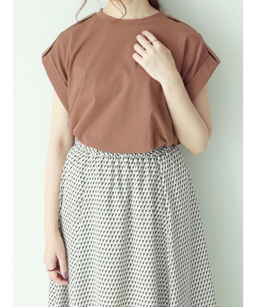 エポーレットデザインが旬なムードをメイクするプルオーバー。クルーネックになっているので、首周りをすっきり見せてくれます。フレンチスリーブが抜け感カジュアルのポイントに。ワードローブに加えておけば着こなしの幅が広がるおすすめアイテムです。