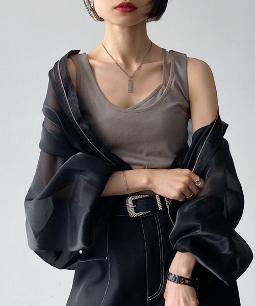 【PAGEBOY CORE】媚びない、自立した『オンナマエ』な女性に向けたファッション。COOLでMODEなスタイルを、今の時代と気分に合わせて提案。 レイヤード風のデザインがトレンド感のあるモードタンクです。 1枚で着用してもアクセントになる商品です。 シアー系のトップスと合わせたり、シャツのinに合わせたりとコーディネートの幅も広がります。 しなやかでソフトな風合いと、上品な光沢感が特徴の素材を使用している商品です。 こちらの素材は人と地球にやさしいエコロジー原料を使用しています。 〈注意事項〉 ・モニター・環境等により実際の商品と色味が多少異なって表示される場合がございます。予めご了承をお願いいたします。 ・撮影環境により、光の当たり具合で色味が違って見える場合があります。あらかじめご了承下さい。