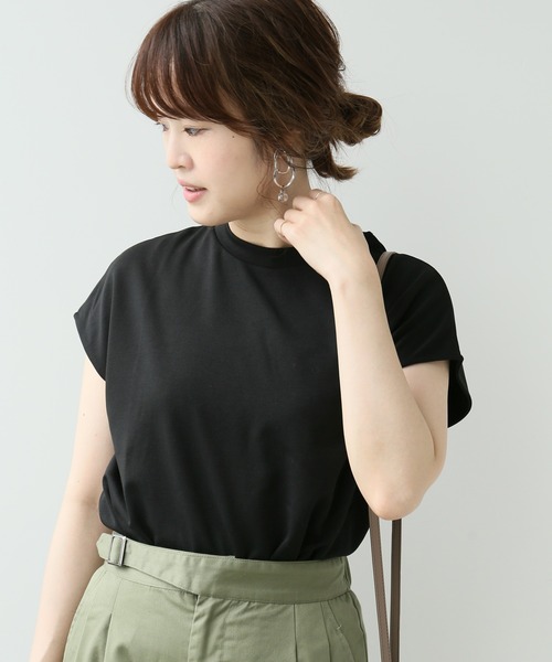 【2021SS】SimpliciteモックネックのTシャツが登場!上品な首元の演出と、夏から初秋までコーディネートの幅を広げてくれる一着。軽くてなめらかな素材感が魅力のポンチ生地を使用し、スムースな質感に仕上げました。ストレッチ性があり、シワにもなりにくいのでデイリーユースに取り入れて頂きやすい一着です。フレンチスリーブの袖なので、カジュアルになりすぎず、キレイめコーデにも活躍してくれます。裾はラウンドのデザインにスリットが入り、一枚でサラッと着こなしても様になるアイテム。シンプルなデザインなので、夏のベース服にもオススメです。手洗い可能でご自宅でのイージーケアが出来るのも嬉しいポイント!※取り扱いについては、商品についている品質表示でご確認ください。・本体:手洗い可能※店頭・屋外での撮影画像は、光の当たり具合で色味が違って見える場合があります。商品の色味は、スタジオ撮影の画像をご参照ください。