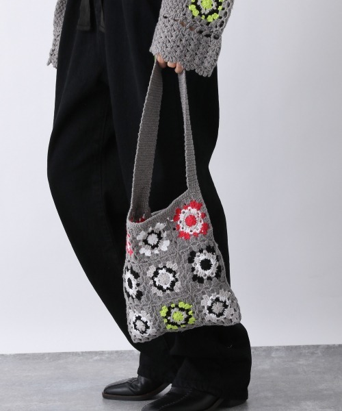 トレンドを抑えるならコレ!ハンドクロシェBAG♪■ITEM POINT■綿綿素材の味わいのある糸と、1目1目手編みで仕上げたフラワーモチーフのトートバッグ。 細編みや長編みを繰り返し、1枚編むの1日かけ長い時間をかけて編んだ機械には出来ない、ハンドメイドバッグになっています♪ ■ITEM FABRIC■まるでおばあちゃんが編んでくれたような懐かしさと、今年らしいカラートレンドがMIXされたジーナシスらしさが詰まったBAGです。 1枚ずつ、丁寧に人の手で編んでいます。 少しの個体差もデザインの1部だと楽しんで頂きたいアイテムです。ペットボトルなど、重いものを入れる時は注意お願い致します。 ■STYLING■ジャケットやSETUPに、あえて外したスタイリングや、同素材のカーディガンとSETで着用したり、ハンドクロシェパンツと合わせても、一気にスタイリングに鮮度が出るBAGです。コーディネートのアクセントにおすすめです◎ -INFORMATION-◆商品のお気に入り登録完売していても再入荷時に再入荷通知を受け取ることができますので、是非ご登録ください♪◆ブランドのお気に入り登録新商品や再入荷などの情報を受け取ることができますので、是非ご登録ください♪