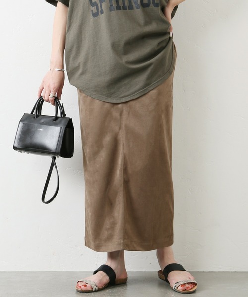 【2021SS】 JOURNAL STANDARD 早くも秋らしいスエードを、薄手のカットソー素材で快適に取り入れられる今年オススメのスカート。 切り替えのデザインがポイントになり、Tシャツやシャツをサラッと合わせるだけで旬な表情に。 同素材でこちらもございます。・フェイクスエードパンツ(品番:21070400929020) ********************** 透け感:なし 裏地:なし 伸縮性:なし 光沢感:ややあり 生地の厚さ:薄め ********************** 【スタッフ着用コメント】 《スタッフO》 年齢:30代前半/身長:158cm/体型:普通/普段サイズ:M/着用サイズ:36.38 サイズ感:ウエストは少しフィット感があります。38サイズがジャストでした。 素材感:テロっとした素材感です。 着心地:肌ざわりがとてもよく着心地抜群です。 ********************** ※取り扱いについては、商品についている品質表示でご確認ください。 ※店頭及び屋外での撮影画像は、光の当たり具合で色味が違って見える場合があります。 商品の色味はスタジオ撮影の画像をご参照下さい。 洗濯:手洗い可 ストレッチ有りです。