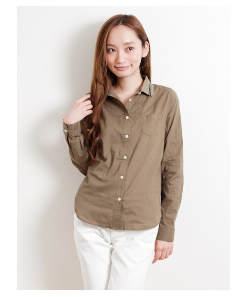 リブ切り替え長袖シャツ。衿部分が切り替えになっていて、ボーダーの入ったデザインがポイントとなっています。衿部分は伸縮性のある素材を利用しているので着心地もいいです。ボタンを開けて羽織り物として使う事も出来るので、着回し力抜群です。【モデル身長:約169cm/着用サイズ:Mサイズ】