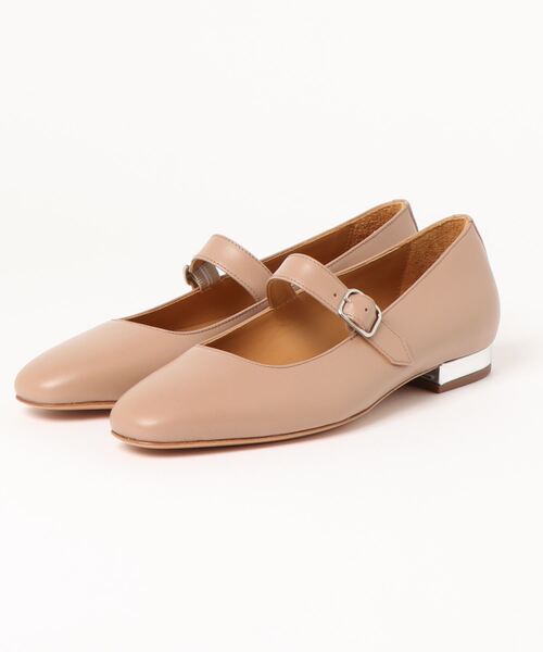 スムースカーフスキン.丸みを帯びたつま先のバレエシューズ. ストラップはメタルバックルで調節可能. レザーのアウトソール.ヒールはシルバートーンのレザー.