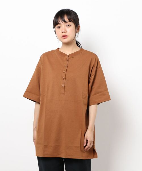 ネックのアレンジも楽しめるヘンリーネックのTシャツ。前後着出来る2WAYデザインで、コーディネートの幅もグッと広がりそう。オーバーシルエットとヒップもカバーしてくれる長めの着丈が、リラックス感のある着心地を叶えてくれます。綿100%素材のさらっとした風合いで、デイリーユースにも重宝しそう。