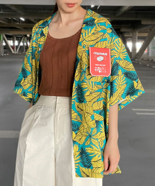 大胆にレイアウトされたリーフ柄プリントが目を引くオープンカラーシャツ。落ち着いた上品なトーンで仕上げた大人が着れる柄シャツです。サイズ感はゆったりとしたリラックスシルエット。サラッとしたポリエステル素材でイージーケアも嬉しいポイント。女性がざっくりと羽織っても◎な一押しアロハシャツです。同素材のショートパンツ(1-0097-3-79-103)とセットアップでも着ていただけます。【生地感】--------------------------透け感:なし裏地:なし伸縮性:適度にあり光沢感:適度にあり--------------------------【スタッフ着用コメント】身長:170cm/体重:52kg/体型:細身/普段サイズ:M/着用サイズ:Mサイズ感:オーバーサイズ気味なオープンカラーシャツです。素材感:ややツヤ感があります。着心地:さらっとして着心地がいいです。【FREDYMAC / フレディマック】80 年代に登場したプレッピースタイルをベースにアメリカンテイストを加えて再構築したオリジナルブランド。カジュアル過ぎずに、どことなく落ち着きのある雰囲気を得意とする。パターン、縫製、着心地に拘ったモノ作りを得意とし、着ていくほどに愛着の湧く服を提案。“SUNDAY TOOLS WEAR" ラインはその中でも「休日に着たいワークウェア」をコンセプトにしており、HOUSEWORK やONE MAILE が楽しくなる服を展開。※お取扱い上のご注意アテンションタグを必ずご確認の上、着用又はお取り扱いください。※店頭及び屋外での撮影画像は、光の当たり具合で色味が違って見える場合があります。商品の色味は、スタジオ撮影の画像をご参照下さい。※商品画像に関しては出来る限り忠実に表示出来るよう努めておりますが、お客様がご利用のモニターの設定及び特性により、実際の商品と比較し色味に若干の誤差が生じる場合があります。◇商品のお気に入り登録◇【お気に入りに登録】を是非ご活用ください。 再入荷の通知や、ラスト1点の通知、セールの通知がいち早く届きます。◇ブランドのお気に入り登録◇新商品や再入荷など、いち早くブランドのお得情報が届きます。