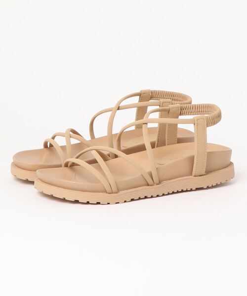 流行のコードストラップで華奢見えするサンダル細めのストラップは足を細く見せる効果があり、タウンユースにもってこいのアイテム。シンプルなモノトーンなので使いまわしが効き、様々なシーンにマッチします。スポーツスタイルなので、素足でペディキュア映えはもちろん、ソックス着用も◎ソールは屈曲性の良いPVC素材で衝撃吸収効果もあります。かかとのストラップはゴムになっており脱ぎ履きもラクラク♪【カラー展開】様々なシーンに合わせやすい、ブラック♪春夏コーデといえばこの色、ベージュ♪