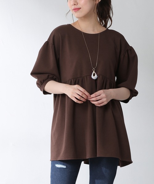 バックのレースアップが女の子らしい 6分袖チュニック。 ゆったりとしたシルエットと ドロップショルダーでこなれ感を演出。 ふんわり可愛いボリューム袖で 気になる二の腕もカバー◎ シンプルスタイルに アクセントをプラスできる おしゃれアイテムです♪ 品番:578-13-7045 洗濯:手洗い可 ※サイズにつきましては若干の誤差が生じる場合がございます。予めご了承ください。 ※6分袖 ●マーブル柄涙型モチーフ付きネックレス
