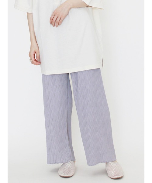 無駄な装飾を省いたミニマルなルックスで、着回し力にも優れたプリーツパンツ。 レッグラインを拾わないシルエット&ウエストゴム仕様で、リラクシングな穿き心地を実現。縦感がほど良く強調されることで、女性らしい脚線美を後押ししてくれる嬉しい効果も期待大。 シンプルなトップスとのコーデも華やかに見え、あか抜けた大人スタイルが楽しめます。