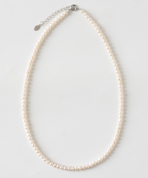 淡水パールの連のネックレスです。 綺麗な光沢のポテトカットの淡水パールで表情があり、 かっちりしないラフさが印象的です。 ユニセックスで着けれるよう量感ある鏡面シルバーで 仕上げています。 ※淡水パールは表面に白い点や傷、スジや凹みが見られます。 また、一粒ずつ大きさ・形が異なります。 予めご了承ください。 2022年6月29日より素材費、加工費高騰のため価格が変更になりました。