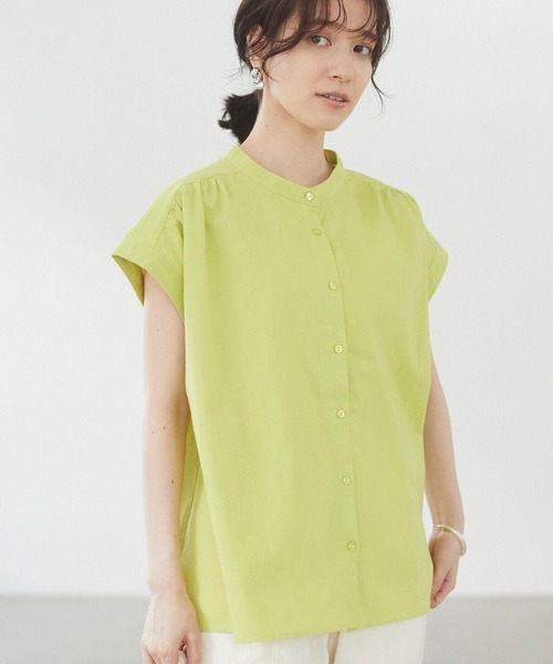 リネンブレンドのナチュラルな風合いが涼しげなブラウス。クラシカルなムード漂うスタンドカラーも好印象ポイント。肩先を少しカバーしてくれるアームデザインで、二の腕を細く見せる効果も期待できます。ボトムスINせず、さらっと着ただけのルージーなこなれスタイルも、女性らしさをほどよく残したルックスに決まります。【素材】透け:オフホワイトはややあり伸縮性:なし生地の厚さ:普通光沢感:なし■STAFF着用レビュー・ゆったりとした袖口のフレンチスリーブは二の腕をカバーしてくれる優れもの◎・しっかりハリのある素材のため肩のシルエットをダイレクトに拾わないので華奢見え効果もあります!● Green Parks ●(グリーン パークス)20以上の人気ブランドを取り扱うアパレルセレクトショップ。ベーシックながらもさりげなくトレンドを取り入れたオリジナルブランドchocol raffine robeも展開。▼ 商品のお気に入り登録がおすすめです ▼商品ページ内のハートマークをクリック。完売時の再入荷や、最後の1点の通知、コーディネート画像がアップされたとき、お得なお値下げの際の通知を受ける事ができます。【お知らせ】ページでも通知が確認できます。