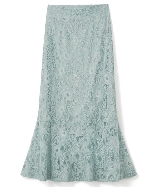 花柄レースがコーディネートの主役になること間違いなしの華やかでエレガントなアイテム。 裾にかけて美しく広がるマーメイドシルエットも、上品見えにひと役。 ハイウエストでお腹まわりはスッキリと。