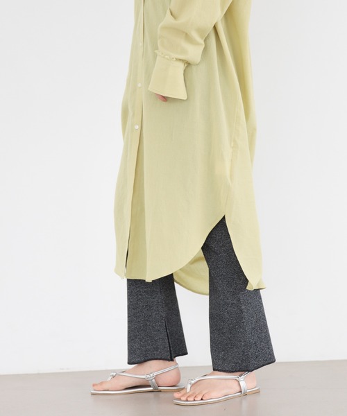 ゆるやかなフレアシルエットで、脚長効果バツグンのカットソーレギンスパンツ。 細いリブ編みは、コーディネートに馴染みやすくレイヤードにぴったり。 使いやすいベーシックなカラーバリエーションです。 【素材】 コットン×ポリエステル×ポリウレタンの適度な厚みのあるリブ編み素材。 ソフトな質感で、穿き心地バツグンです。 2色の糸で編み上げているので、独特の表情をお楽しみいただけます。 【スタイリング】 長めのトップスや、ワンピースとのレイヤードがオススメ。 ウエストゴムのイージー仕様で、お腹まわりもラクチンなのでおうちコーデにも最適です。