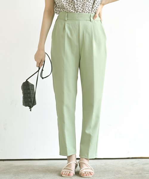 さっとはけるリラクシーなテーパードパンツセンタープレスがきれい見え&すっきり見えを叶えるテーパードパンツ。ウエスト後ろがゴム仕様になっていて着脱も着心地もリラクシーな1枚です。定番のブラックとニュアンスカラーの優しい色展開も魅力。スタイリングに女性らしい彩を添えてくれます。ハイウエストなので脚長効果も期待できます。オンもオフも使えて、オフィススタイルにも最適♪裏地なし伸縮性なし薄手ウエスト後ろゴム仕様ベストループありサイド・ヒップポケットあり洗濯:洗濯機使用可(ネット使用)