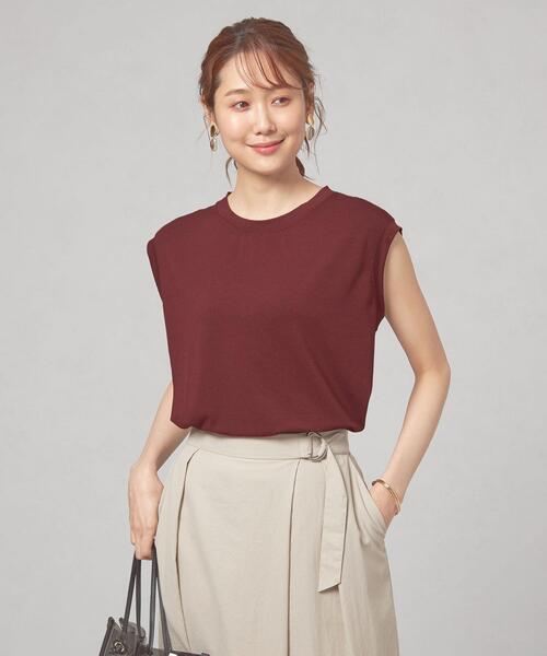 ■WEB限定アイテム■ 肌触りの良い滑らかな素材がデイリー使いに最適なノースリーブのカットソー。 肩に優しく沿うフレンチスリーブ風のデザインに適度に詰まったネックラインが、カジュアルながらも品の良さを覗かせる一枚。 イン・アウトどちらのスタイルもサマになる絶妙な着丈は、さまざまなボトムとのスタイリングを可能にし、デニムからロングスカートやキャミソールワンピースのインナー使いとしてもぴったり。 ベーシックなホワイトとブラックに、夏らしさを誘うピンク、ワインレッドのように深いダークブラウンと、それぞれ異なる雰囲気をお楽しみいただけるラインナップです。 ____________________ 透け感:ホワイトややあり 生地の伸び:あり 裏地:なし ケア方法:手洗い可 ____________________ <closet story> フレンチシックとブリットモダンがテーマのオリジナル企画レーベル。 若々しさと可愛らしさをもったエレガントなスタイルをベースに、都会的で今日を生きる女性が「自分らしさ」を大切にしたいときに揃えたいアイテムを提案します。 店舗へお問い合わせの際は、 全国のTHE STATION STORE各店舗まで下記の品番をお申し付け下さい。 品番:6917-699-0295