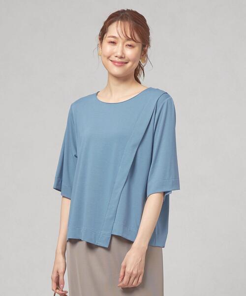 ■WEB限定アイテム■肌触りの良いソフトな風合いの素材で仕立てた5分袖のカットソー。ラフに着てもサマになる、大胆にあしらった切替がシンプルな装いにアクセントを添える一枚。ほど良く開いたラウンドネックやコンパクトな着丈は女性らしさがあり、シックにパンツスタイルで合わせたり、スカートを合わせてフェミニンさをプラスした着こなしもおすすめ。シーン問わずお使いいただけるホワイトとブラックに加えて、肌馴染みの良いロイヤルカラーが個性を発揮します。____________________透け感:ホワイトややあり生地の伸び:あり裏地:なしケア方法:手洗い可____________________<closet story>フレンチシックとブリットモダンがテーマのオリジナル企画レーベル。若々しさと可愛らしさをもったエレガントなスタイルをベースに、都会的で今日を生きる女性が「自分らしさ」を大切にしたいときに揃えたいアイテムを提案します。店舗へお問い合わせの際は、全国のTHE STATION STORE各店舗まで下記の品番をお申し付け下さい。品番:6917-699-0303