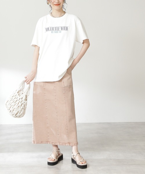 カジュアルな雰囲気のライトコットンナロースカート。ミリタリーテイストなビッグポケットがアクセントになります。ベルトデザインをなくして、腰まわりをすっきりと仕上げたIラインのデザインです。バックウエストはゴム仕様、裾はスリットが入り、歩きやすさを高めています。今季トレンドのパフ袖トップスと合わせてフェミニンに、Tシャツを合わせると大人のカジュアルスタイルも楽しめます。