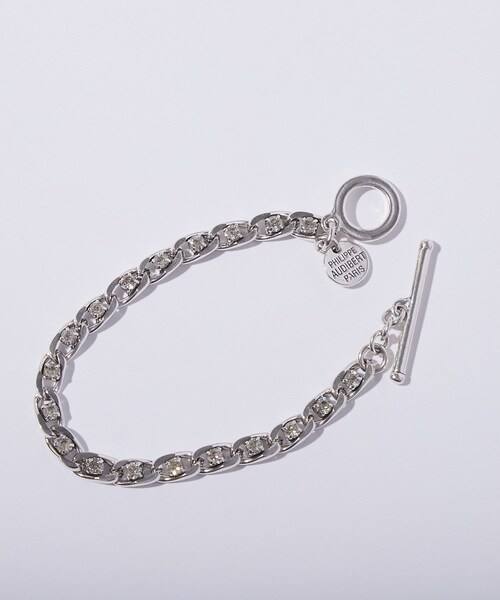 手元に洗練ムードをプラスしてくれるスパークブレスレット●デザイン規則正しく並んだシルバーカラーのチェーンブレスレット。シンプルでほどよいサイズ感は、お手持ちのブレスレットとの重ね付けも楽しんでいただけます。カジュアルスタイルにはもちろん、フェミニンなコーディネートにもおすすめです。装飾を省いたシンプルな作りながらも立体感のあるシルエットがスタイリングのアクセントに。●サイズ長さ17.5cm 幅0.5cm 重量:11g●素材真鍮【PHILIPPE AUDIBERT(フィリップオーディベール)】1989年、デザイナーで彫刻家のPhilippe Audibert(フィリップ・オーディベール)がフランス・パリにて創業したジュエリーブランド。 コレクションをただのアクセサリーやファッ ションのアクセントではなく、個性的な独 立したアートと捉えているPhilippe Audibert(フィリップ・オーディベール)の情熱は、デザインや製作をパリのみで行い、 常にコレクションのレベルを高めようとする姿勢からも伝わってきます。--------------------------------------------------------------------------------【注意点】※画像の商品は光の照射や角度、お使いのモニター環境により、 実物と色味が異なる場合がございます。あらかじめご了承下さいませ。--------------------------------------------------------------------------------【『♡』をクリックでお気に入り登録】・ラスト1点や再入荷の通知が届きます。--------------------------------------------------------------------------------#今買いアイテム#アクセサリー#ジュエリー#チェーン#シルバーアクセ#デイリーユース#プレゼント#ギフト#シーズンレス#真鍮