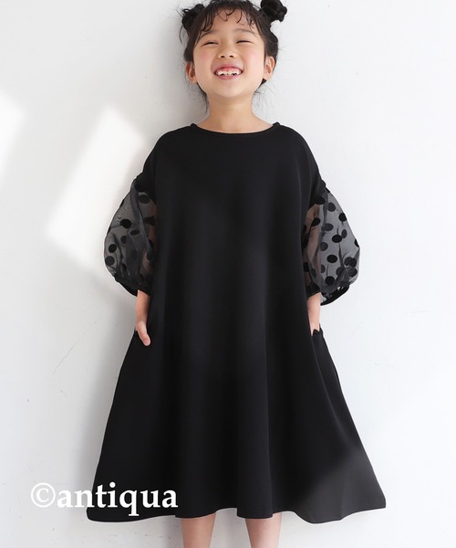 袖ぽわ。透け感とどっとのハイセンスワンピ。 デイリーにもフォーマルにも着用できる優秀な一着。 ポイントはなんといっても袖のデザイン。 ハリのある生地の透け感と愛らしいどっとで少し背伸びした気分に♪ ≪DETAIL≫ ・ひらりと広がるAラインシルエット。 ・上品な透け感のドットスリーブにころんとした愛らしいフォルムのボタン。 ・涙開きデザインで後ろ姿もぬかりない。 ・便利な両サイドポケット付き。 ・ネックラインはすっきりと仕上げ幅広いシーンで使いやすい。 ≪FABRIC≫ ・高級感たっぷりなポンチ素材使用。 ・シワになりにくくカタチが崩れにくい。 ・伸縮性があって着心地バツグン。 ・程よくしっかりとした生地だからカジュアルにもフォーマルにも◎ ≪COLOR≫ ブラック 1色展開! ≪SIZE≫ 3・4・5の選べる3サイズ展開! ※袖のドット部分はフロッキープリントです。 フロッキープリント製品は特殊加工です。永久的なものではございません。 引っ掛け、摩擦などでフロッキーが脱着や薄くなることがございます。 ※こちらの商品はデザイン性や素材感を重視し繊細な風合いの生地を使用しています。 強い力がかかると滑脱したり目寄れすることがございます。 ※その他お取り扱いに関しましては商品に付属のアテンションタグをご覧ください。 ※別生地部分は天候により静電気が生じる場合がございます。ご了承の上お買い求めくださいませ。