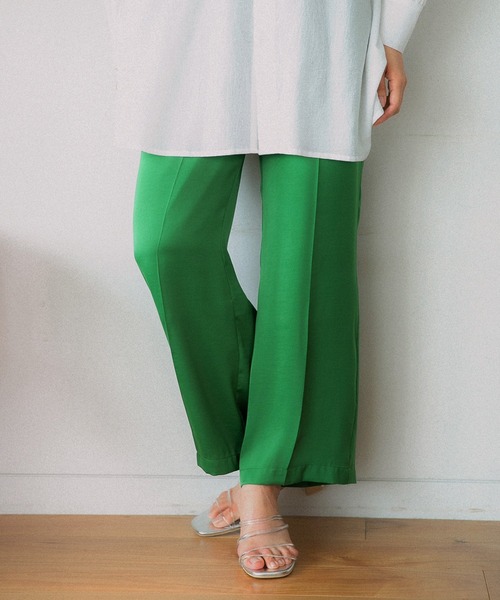グローバルワークのリラックスウエア大人リラックスパンツさりげない光沢感のあるビンテージサテンの大人リラックスパンツ。速乾性のあるポリエステルを使用しています。同素材のワンピースと合わせた大人セットアップや、カジュアルトップスの締めとして合わせていただいても◎同素材のワンピースはこちらワタシらしい、距離感で。らしさってなんだろう。それぞれ住む場所、時間があって、わたしにもワタシの時間がある。そうか。らしさって付き合い方なのかも。そう考えたら心地よい、これで良い。ワタシの距離感で過ごす。半径1.5kmを、輝かせる服。グローバルワークのリラックスウエア