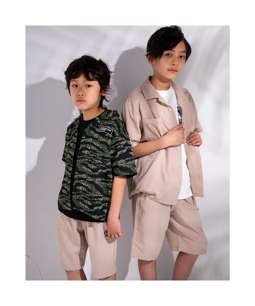 ベージュの無地と迷彩の2色展開の男の子用サファリパンツ。 ウエストは総ゴムで着脱も楽々◎ 同素材のシャツ(商品品番:1626-33001)とセットアップが可能です♪ 【RAD CUSTOM(ラッドカスタム)】 GROOVY CASUAL STYLE 大人顔負けのクールでエッジの効いたストリートカジュアルスタイル。 デザイン、ディテール、シルエットに対するこだわりと今を意識した提案。 モノトーンを基調としながらも鮮度のあるシーズンカラーを差し込み展開します。