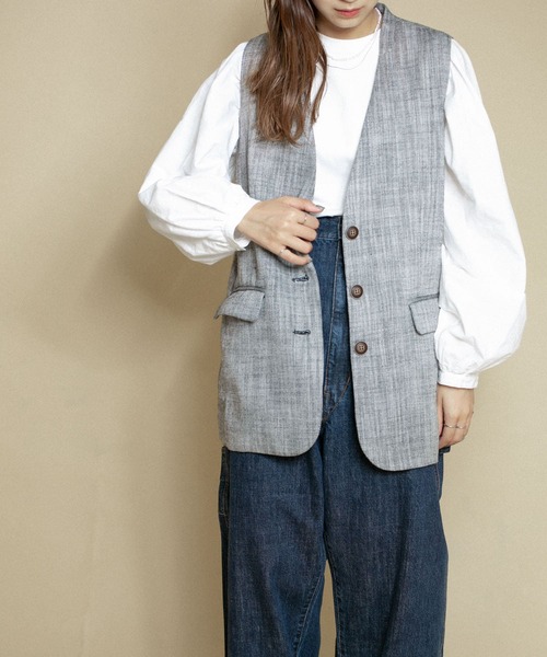 【引き続き注目!スタイリングの幅が広がるベスト】 羽織るだけでスタイリングの幅が広がるベストが登場。落ち着きのあるカラーリングですが、ヘリンボン柄が程良いアクセントになって◎これからの季節、シンプルにTシャツを合わせるも良し、インナーのみでヘルシーな肌見せをすると夏らしさが高まるのでおすすめです。 POINT ・スタイリングの幅が広がるアイテム ・程良いアクセントのヘリンボン柄 ・デイリー使いにぴったりな3色展開 COORDINATE ワンピースやTシャツにさらっと羽織るだけでこなれた印象になります。アメリカンスリーブRIBタンク(KB15-21L980)とも相性抜群。カラーパンツを合わせるのもおすすめです。 ※この商品は、激しい動きで強い力がかかったり、他のものに引っ掛かったりすると、滑脱(縫い目が滑って開いたり、縫いしろが抜ける)したり、目寄れ(織り糸が滑って片寄り、織り目が開く)が生じる場合があります。ご使用の際には十分ご注意ください。 総重量 : 約385g ※商品画像は、光の当たり具合やパソコンなどの閲覧環境により、実際の色味と異なって見える場合がございます。予めご了承ください。 ※商品の色味の目安は、商品単体の画像をご参照ください。 ----------------------------- 透け感:なし 伸縮性:なし 裏地:あり 光沢:なし ポケット:あり -----------------------------
