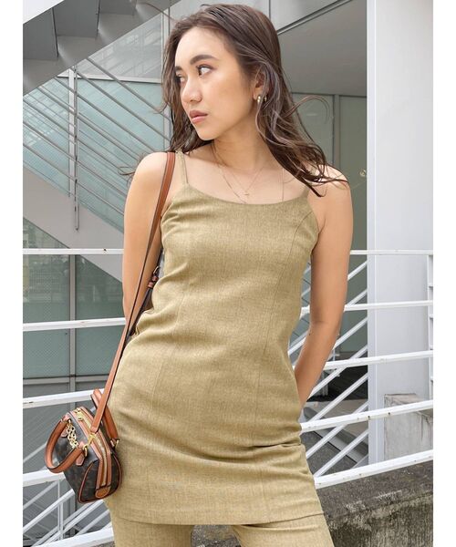 清涼感のあるサマーツィード素材のミニワンピース。後ろにゴムを通しているデザインのため、着心地に安定感のあるデザイン。ワンピとして一枚で着用しても、同素材で展開しているフレアパンツとセットアップで着用してもトレンド感のあるスタイリングが作れます。■セットアップITEM >>サマーツイードフレアパンツ