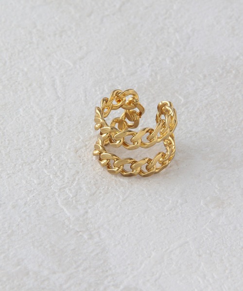 キヘイチェーンを型取りして作ったダブルレイヤーリング【素材】 真鍮素材を使用しているので、程よく重みのある着用感です。 【デザイン・シルエット】 トレンドのチェーンアイテムをスタイリングに取り入れやすいリングに成型したアイテム。 ダブルレイヤーでボリューム感のあるリングに仕上げました。 スタイリングのスパイスになるアイテムです。 【カラー】 濃いゴールドに少しだけくすみを入れた、ヴィンテージ感のあるゴールドカラー 【その他のポイント】 同シリーズでイヤーカフと(品番:GWZ41250、GWZ41270)と、リング(品番:GWZ41240)も展開しております。 ※店頭・室外で撮影している画像は、光の当たり具合で色味が若干異なって見える場合がございます。 商品の色味は、スタジオ撮影の画像をご参照ください。 ※画像の商品はサンプルです。 実際の商品と仕様、加工、サイズが若干異なる場合がございます。 ※店舗での商品のお取り扱いについて ROPE'の商品は、ROPE'実店舗のみの取り扱いになります。 また、MADEMOISELLE ROPE' の商品は、MADEMOISELLE ROPE' 実店舗のみの取り扱いになります。 ※商品の入荷状況は、店舗までお問い合わせをお願いいたします。 マドモアゼルロペ/マドモアゼル/マドモアゼル ロペ