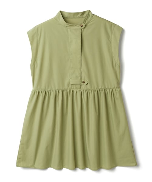 キリッとしたスタンドカラーがマニッシュスタイルを作り出す。 爽やかなノースリーブで大人女性ムードが漂う。 ペプラムデザインでメリハリの効いたウエストに。 長めの丈は気になるヒップラインを綺麗に隠してくれる。