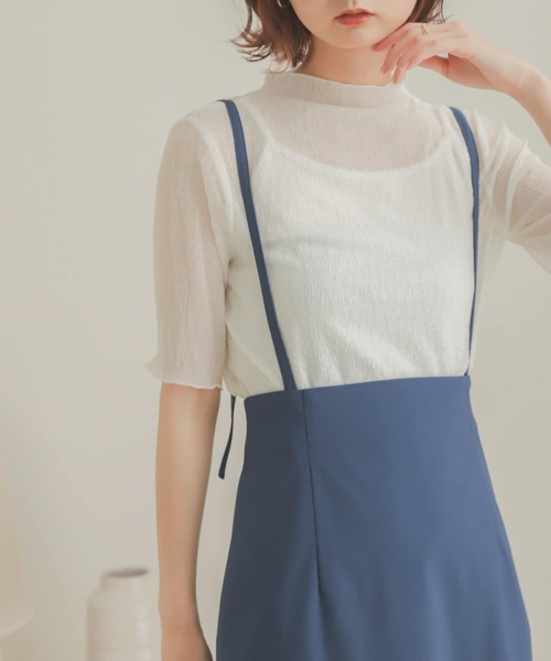 毎シーズン人気のヨウリュウアンサンブルがアップデートしてこの秋登場プチハイネックで後ろのデザインステッチがポイント〇嬉しいキャミ付き〇程よい透け感〇コンパクトで程よいサイズ感stylingシンプルながらもコーディネートの幅を広げてくれるこちらのトップスはスッキリとしたパンツや、デニムなどカジュアルなアイテムに合わせて頂くのもおススメです。material柔らかく肌あたりの良い素材を使用しているので暑い秋立の時期も使いやすい素材になっております。[インナー]one : 肩幅24cm / 総丈52.5cm / 身幅38.5cm※商品画像は、光の当たり具合やパソコンなどの閲覧環境により、実際の色味と異なって見える場合がございます。予めご了承ください。※商品の色味の目安は、商品単体の画像をご参照ください。-----------------------------(アウター)透け感 : あり伸縮性 : あり裏地 : なし光沢 : ややありポケット : なし----------------------------------------------------------(インナー)透け感 : ややあり(OFF WHITEのみ)伸縮性 : あり裏地 : なし光沢 : なしポケット : なし-----------------------------▼お気に入り登録のおすすめ▼お気に入り登録商品は、マイページにて現在の価格情報や在庫状況の確認が可能です。お買い物リストの管理に是非ご利用下さい。