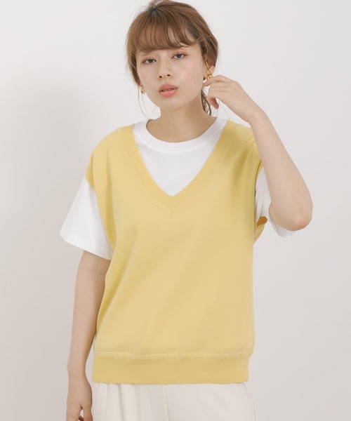 ベーシックな白Tシャツとベストがセットになったアイテム。これ1枚でトレンド感のある着こなしが叶います。ベストは深Vですっきりとした印象。ブラウスやワンピースに重ねたレイヤードスタイルもおすすめです。[インナー]FREE : 肩幅41.5cm / 着丈50.5cm / 身幅49.5cm / 袖丈22.5cm※商品画像は、光の当たり具合やパソコンなどの閲覧環境により、実際の色味と異なって見える場合がございます。予めご了承ください。※商品の色味の目安は、商品単体の画像をご参照ください。-----------------------------透け感 :ややあり(インナー)伸縮性 :あり裏地 :なし光沢 :なしポケット :なし-----------------------------
