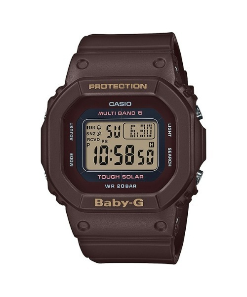 アクティブな女性のためのカジュアルウオッチBaby-G。10気圧以上の防水機能を搭載。水仕事や水泳、スキンダイビングなどのシーンでも使用可能。トータルタイムを計測する機能。ラップ/スプリットタイム機能付きのモデルは、一定の距離ごとのタイムを表示することができます。ファンランナーから記録を目指す本格ランナーまで幅広くサポートします。標準電波を受信し自動的に時刻を修正するので時刻合わせの手間を軽減。北米、欧州、中国対応のマルチバンド6なら海外旅行でも大活躍。サマータイムにも対応しています。