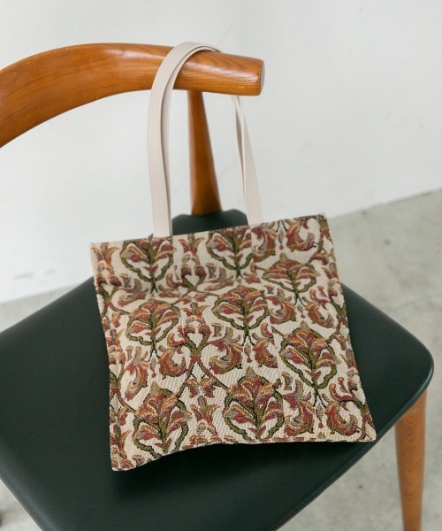 ジャガード織の素材感が秋のスタイルにぴったりなトートバッグ。プリントではなく、ジャガード織で柄を表現しているので、凹凸感があり、スタイリングのアクセントになるバッグです。A4も入る大きめサイズでデイリーにお使いいただけます。