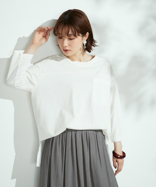 ◆ONIGIRI(おにぎり)のポケットTシャツ◆ 《素材》 繊維の中に空気を含んでいるOE糸(オープンエンド糸)で編んだ天竺素材です。 ピグメントの製品染めで、着込む程に味わいの出る色味になります。 バイオウォッシュ加工を施し、柔らかな肌触りで着心地良く仕上げました。 別地は薄手で柔らかな肌触りのコットンブロード素材で軽やかな着心地です。 《デザイン》 身巾にゆとりを持たせ、ラフに着れる七分袖のデザインTシャツ。 胸元のポケットも別地を使用し、アクセントにしています。 後ろ身頃は別地で切り替え、タックを入れることで軽やかで立体的なシルエットに仕上げました。 裾にスリットを入れているのでタックインしても、ボトムアウトしてもバランスよくサマになります。 …………………… 透け感:なし(別地 ややあり) 厚さ:普通(別地 薄手) 伸縮性:あり(別地 なし) 光沢感:なし(別地 なし) 裏地:なしポケット:あり 洗濯方法:洗濯機洗い可 …………………… ※画像の商品はサンプルとなりますので実際の商品と仕様、加工、サイズが若干異なる場合がございます。 ※こちらの商品はFIVE FOXes独自の採寸方法となっています。 本サイトのサイズガイドと採寸方法が異なる場合がありますのでご了承ください。
