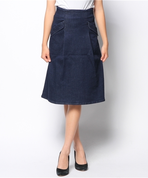 10.5オンスデニムハイストレッチの伸び感の良い素材を使用★腰回りのシェイプされたシルエットがかわいいフレアスカートです。? model H167 B89 W64 H83 着用サイズ:2